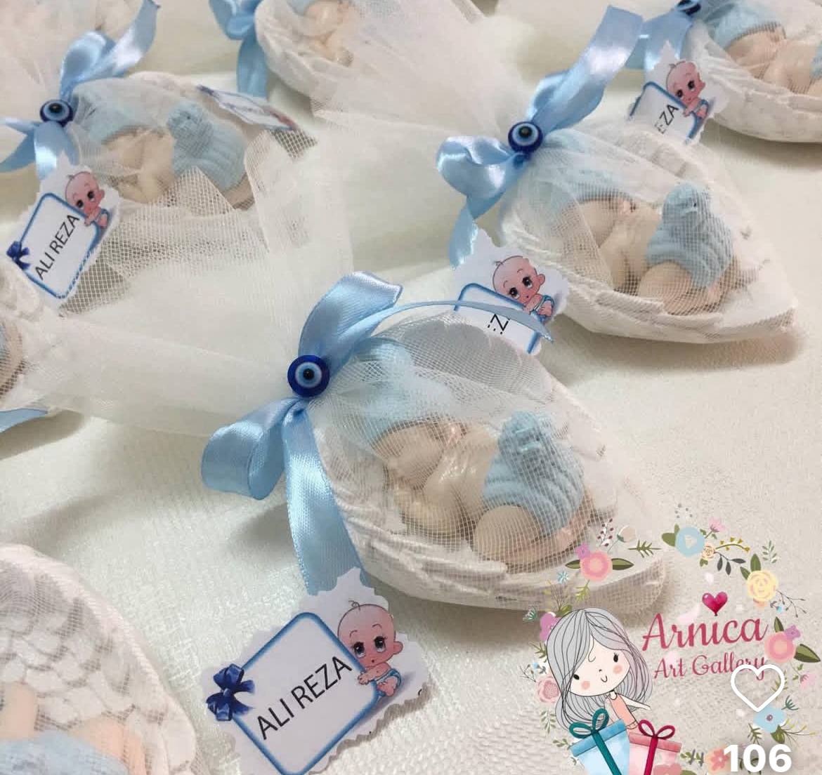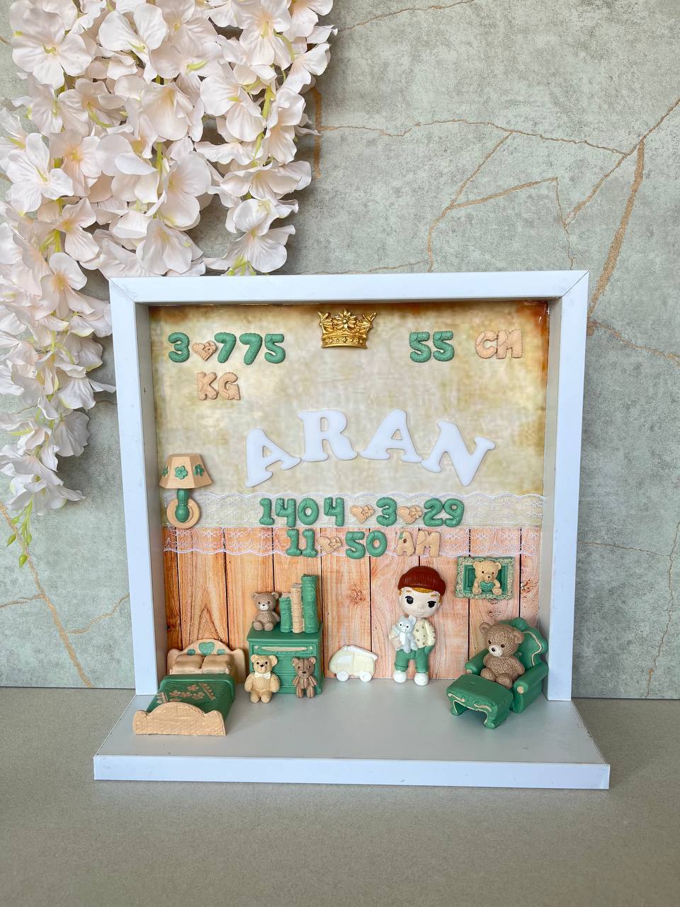 استند اسم مکعبی طرح تدی رنگ کرم سبز