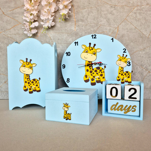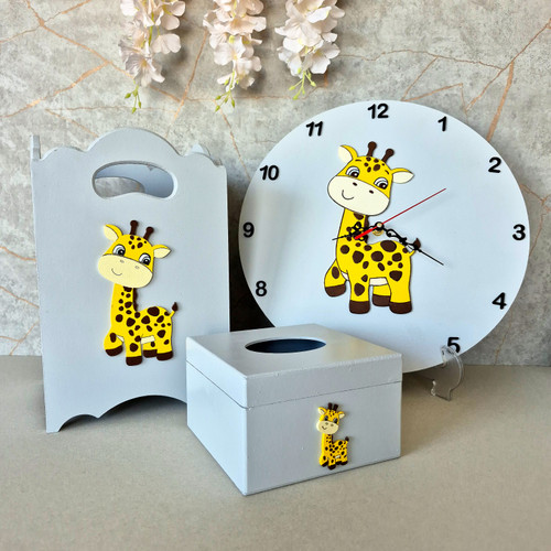 ساعت و سطل و جعبه دستمال کاغذی کودک طرح زرافه