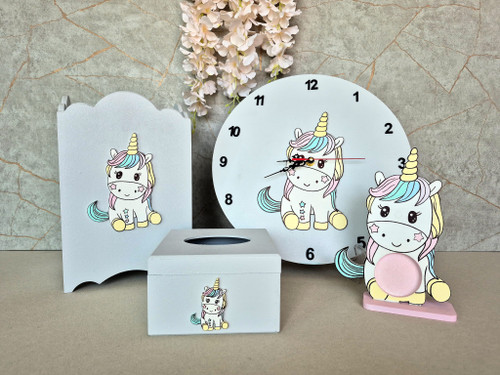 ساعت سطل جعبه و استند سونوگرافی چوبی اتاق کودک تم یونیکورن