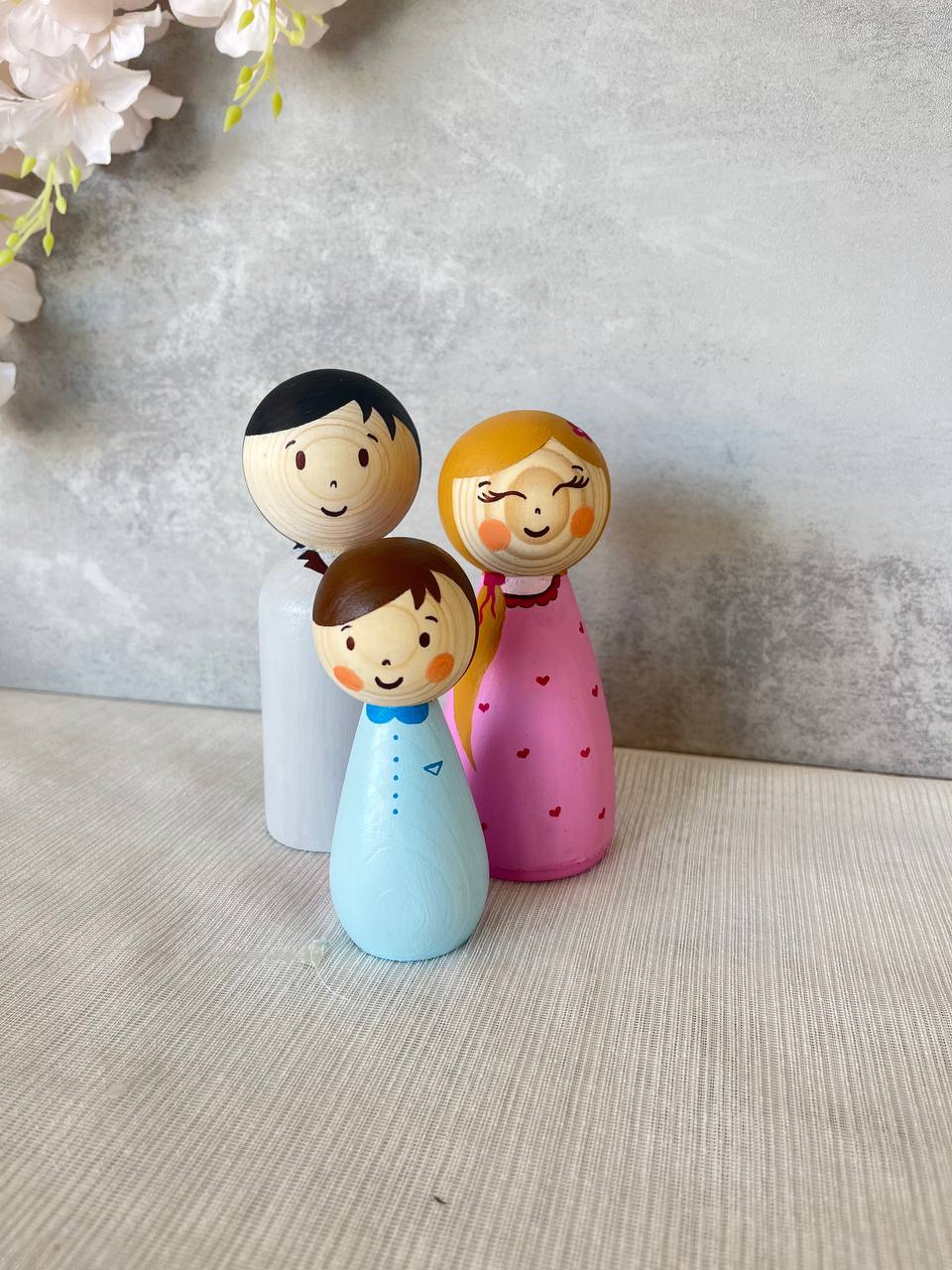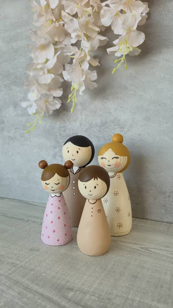 مجسمه چوبی پدر مادر و کودک دختر و پسر